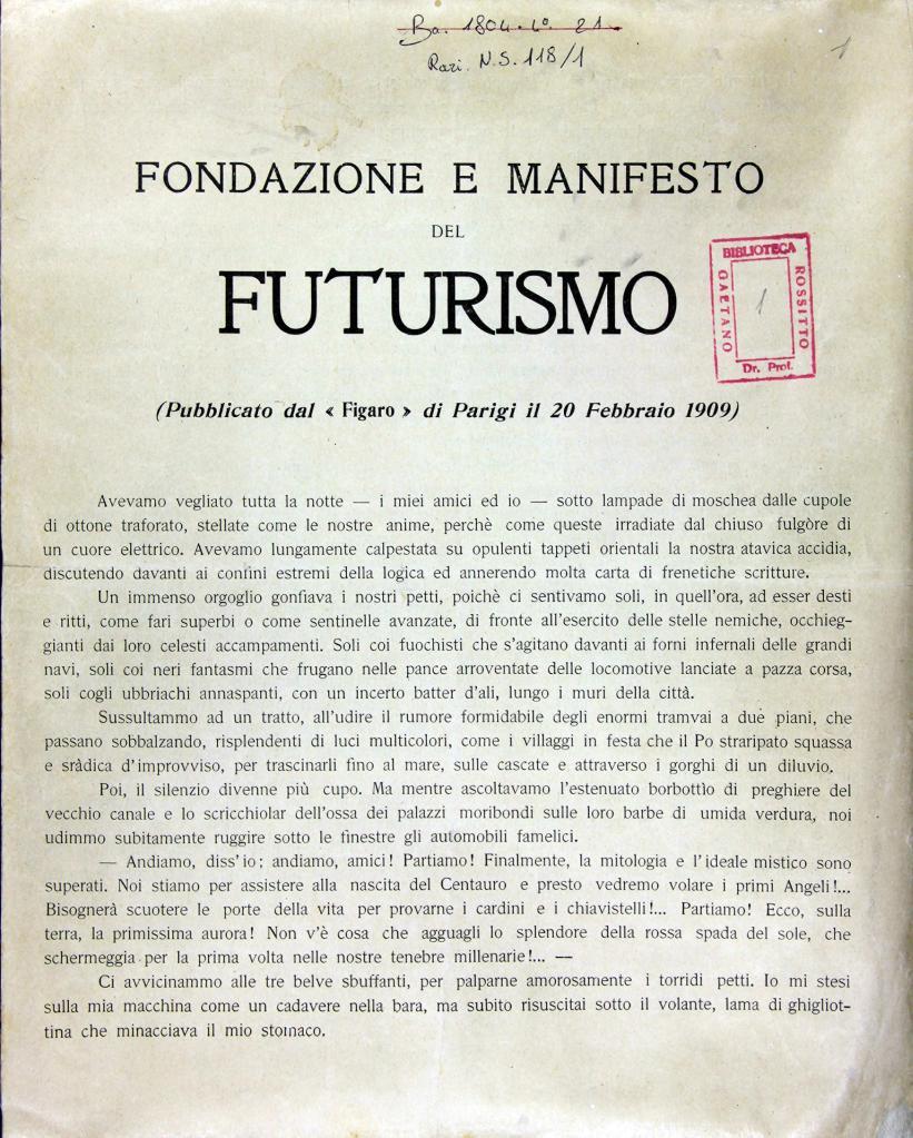 When the Italian poet and art critic Filippo Marinetti published the Manifesto of Futurism (Italian: Manifesto del Futurismo) in 1909, he advocated not only for a new style of art but also for the abolition of the past.